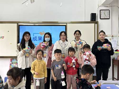在指导小朋友进行手工创作的过程中,我校学前教育专业学生充分展现了一定的专业素养和专业能力,耐心引导,细致指导,最后帮助每位小朋友都成功做出了各自喜欢的手工作品。